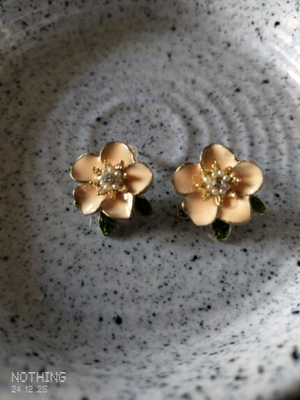 Flower Earring with Leaf