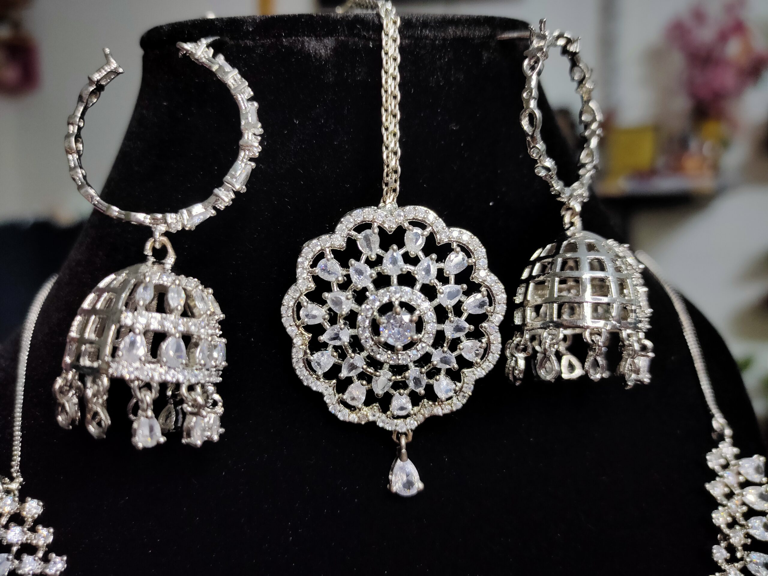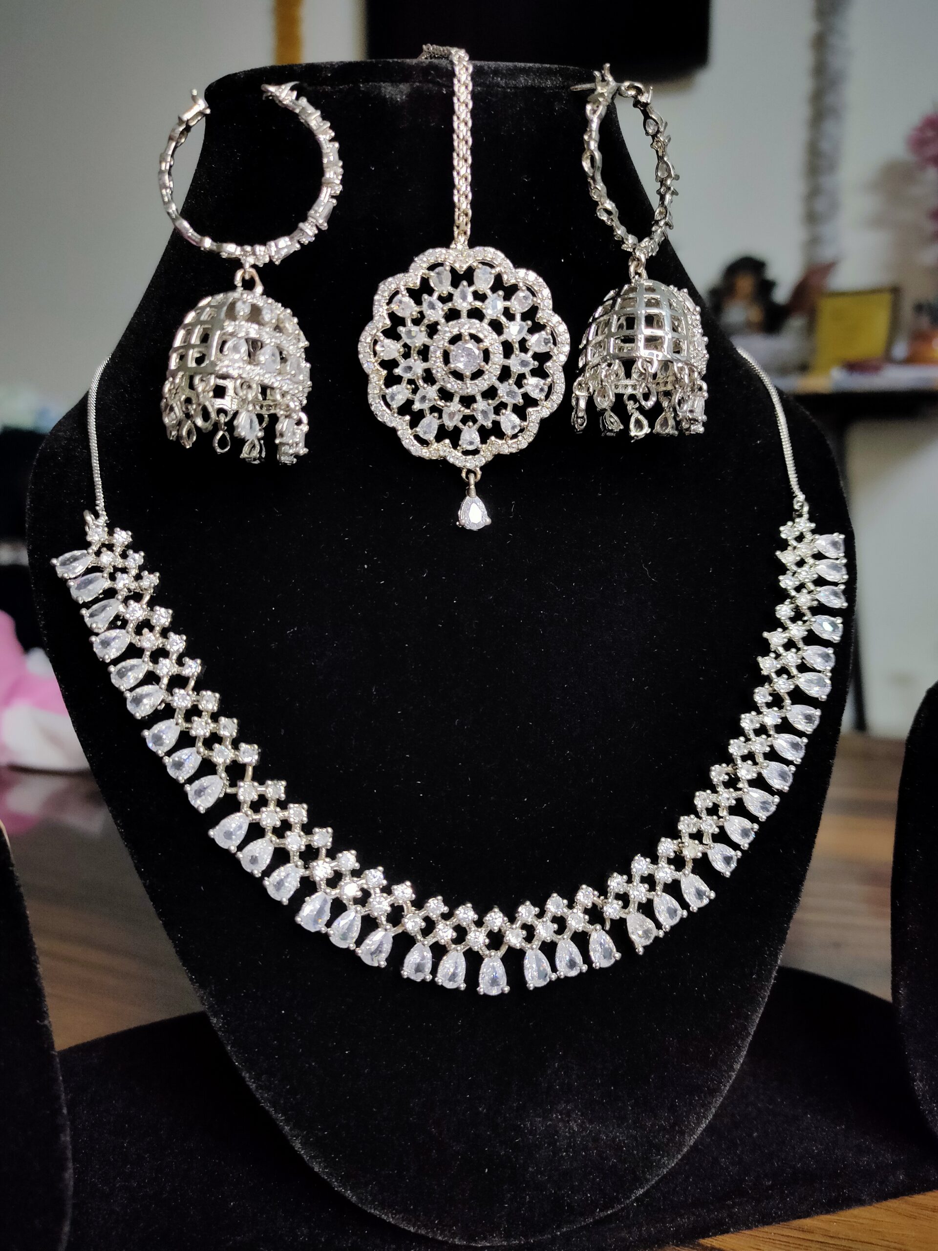 Home Necklace American Diamond Necklace AD Premium Sleek Necklace With Jhumki