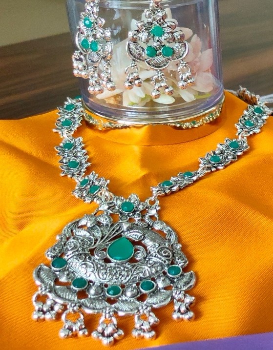 Latest Design Oxidised Long Temple Design Jewellery Necklace set with Earrings for Women and Girls.
